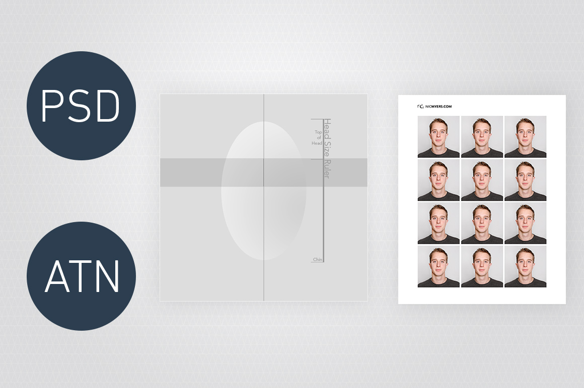 This template is intended for use by commercial photographers who are looking for a quick and easy way to take their professional photos and output them in a standard way for regulation passport and visa photo sizes.